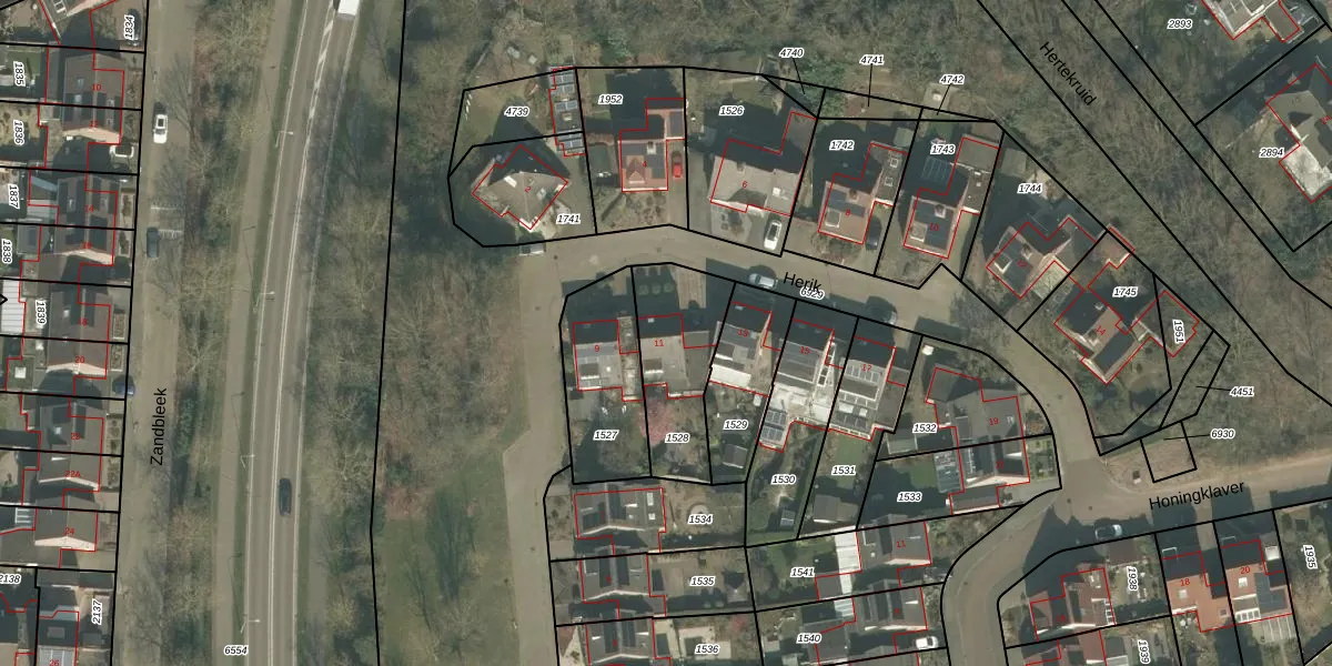 Gebruik de zoekbalk of klik op een perceel voor informatie over de adressen binnen dit perceel.