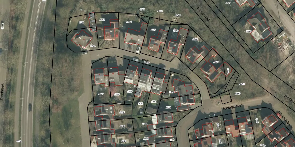 Het perceel waarop Herik 15 staat heeft een oppervlakte van 342 m². Dit is een groot perceel. De perceeloppervlakte wordt geregistreerd door het Kadaster. Gedetailleerde informatie over de maten van dit perceel kunt u vinden in het rapport Kadastrale kaart met maatvoering van Herik 15.