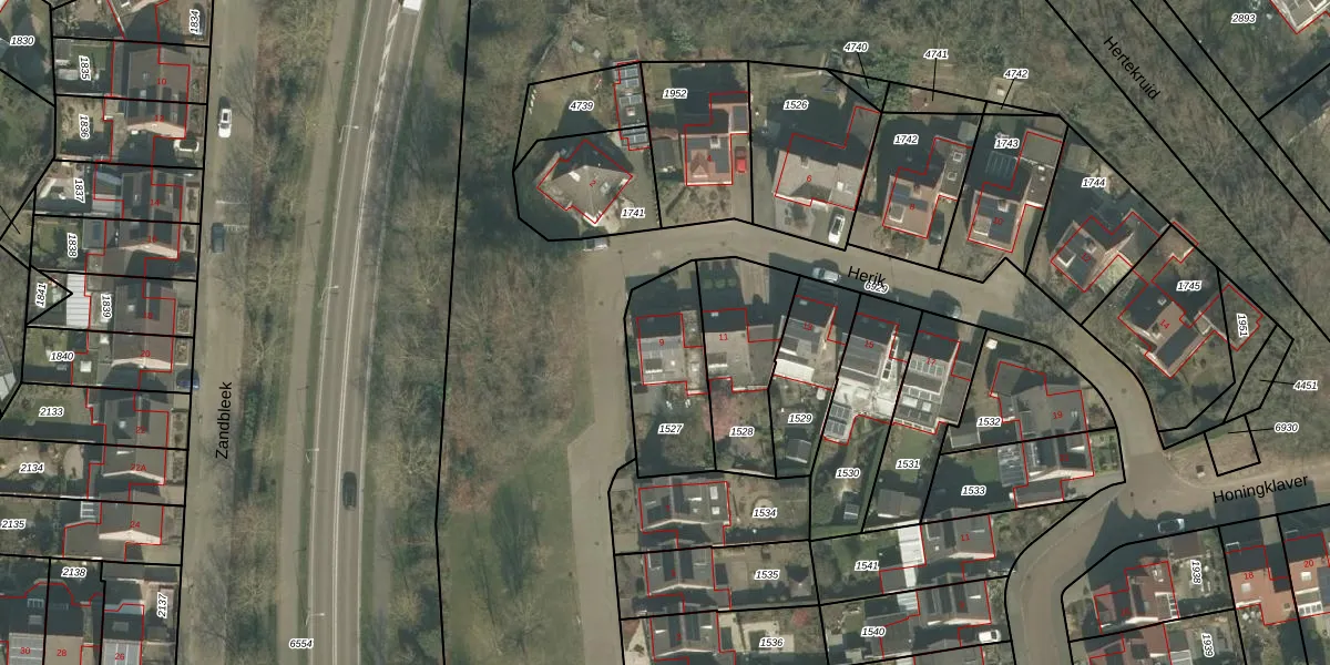 Het perceel waarop Herik 9 staat heeft een oppervlakte van 348 m². Dit is een groot perceel. De perceeloppervlakte wordt geregistreerd door het Kadaster. Gedetailleerde informatie over de maten van dit perceel kunt u vinden in het rapport Kadastrale kaart met maatvoering van Herik 9.