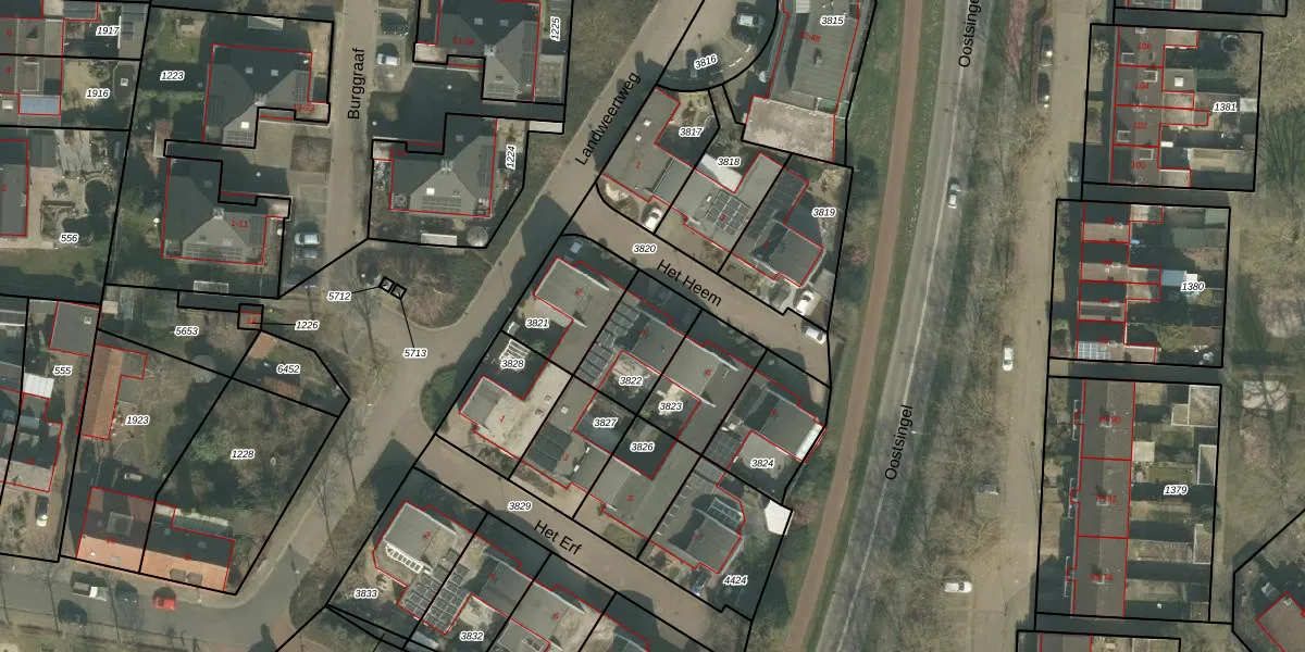 Het perceel waarop Het Heem 4 staat heeft een oppervlakte van 220 m². Dit is een middelgroot perceel. De perceeloppervlakte wordt geregistreerd door het Kadaster. Gedetailleerde informatie over de maten van dit perceel kunt u vinden in het rapport Kadastrale kaart met maatvoering van Het Heem 4.