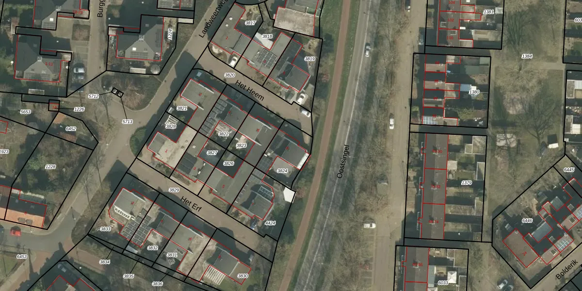 Gebruik de zoekbalk of klik op een perceel voor informatie over de adressen binnen dit perceel.