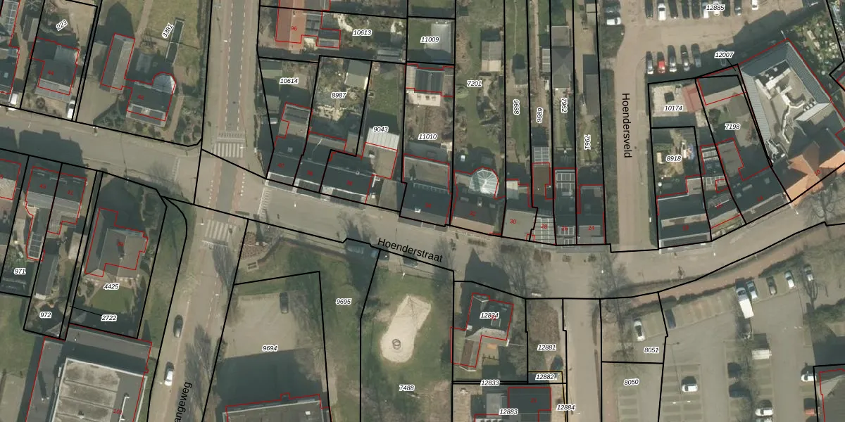 Het perceel waarop Hoenderstraat 34 staat heeft een oppervlakte van 430 m². Dit is een groot perceel. De perceeloppervlakte wordt geregistreerd door het Kadaster. Gedetailleerde informatie over de maten van dit perceel kunt u vinden in het rapport Kadastrale kaart met maatvoering van Hoenderstraat 34.
