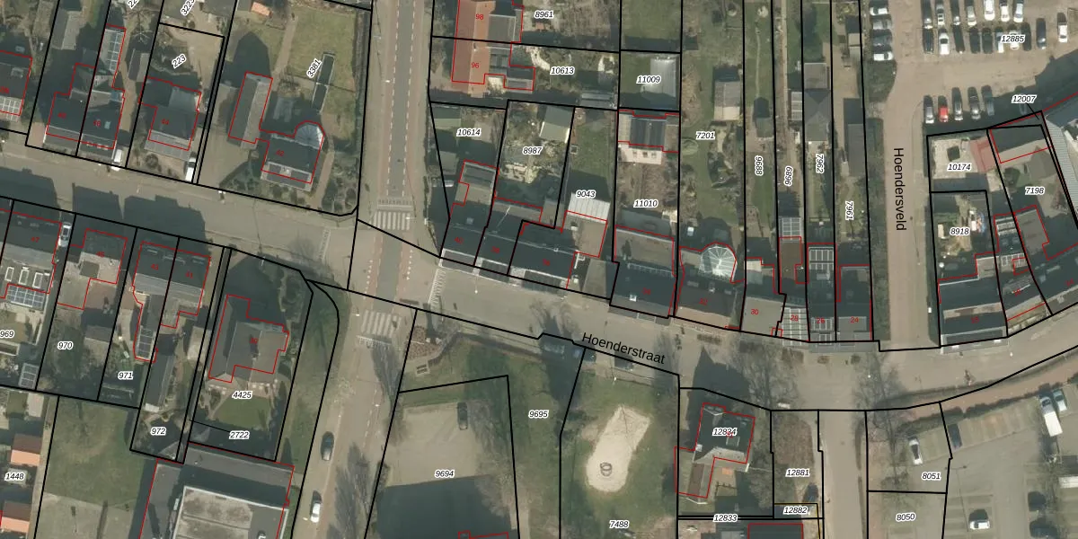 Hoenderstraat 36 is gelegen op kadastraal perceel VRY00C9043. Deze kadastrale aanduiding is uniek en wordt gebruikt door het Kadaster om eigendomsrechten en andere zakelijke rechten vast te leggen. Het perceel maakt onderdeel uit van de kadastrale gemeente Venray.