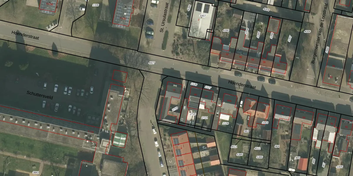 Het perceel waarop Hoenderstraat 71 staat heeft een oppervlakte van 357 m². Dit is een groot perceel. De perceeloppervlakte wordt geregistreerd door het Kadaster. Gedetailleerde informatie over de maten van dit perceel kunt u vinden in het rapport Kadastrale kaart met maatvoering van Hoenderstraat 71.