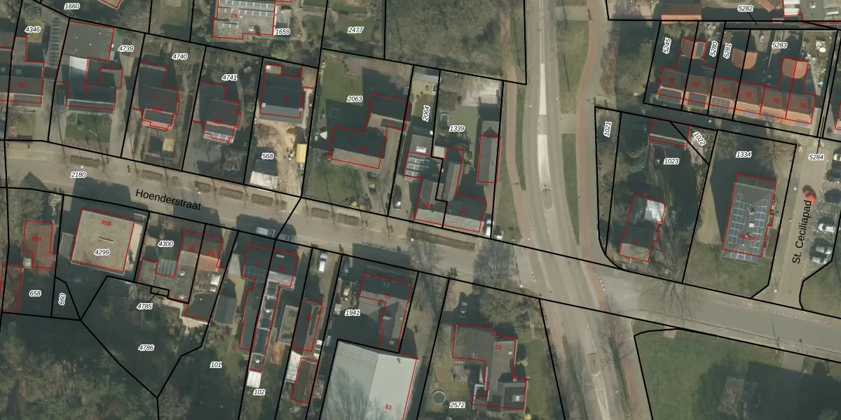 Gebruik de zoekbalk of klik op een perceel voor informatie over de adressen binnen dit perceel.