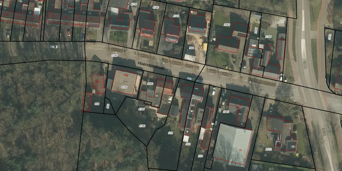 Het perceel waarop Hoenderstraat 93 staat heeft een oppervlakte van 628 m². Dit is een groot perceel. De perceeloppervlakte wordt geregistreerd door het Kadaster. Gedetailleerde informatie over de maten van dit perceel kunt u vinden in het rapport Kadastrale kaart met maatvoering van Hoenderstraat 93.