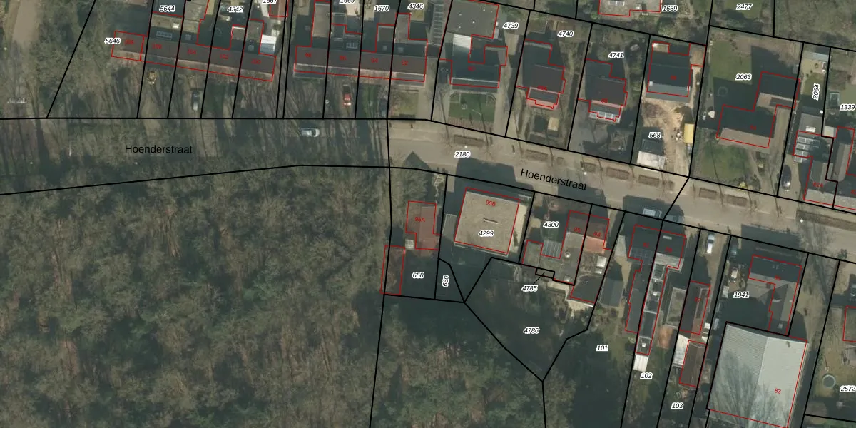 Het perceel waarop Hoenderstraat 95-A staat heeft een oppervlakte van 370 m². Dit is een groot perceel. De perceeloppervlakte wordt geregistreerd door het Kadaster. Gedetailleerde informatie over de maten van dit perceel kunt u vinden in het rapport Kadastrale kaart met maatvoering van Hoenderstraat 95-A.