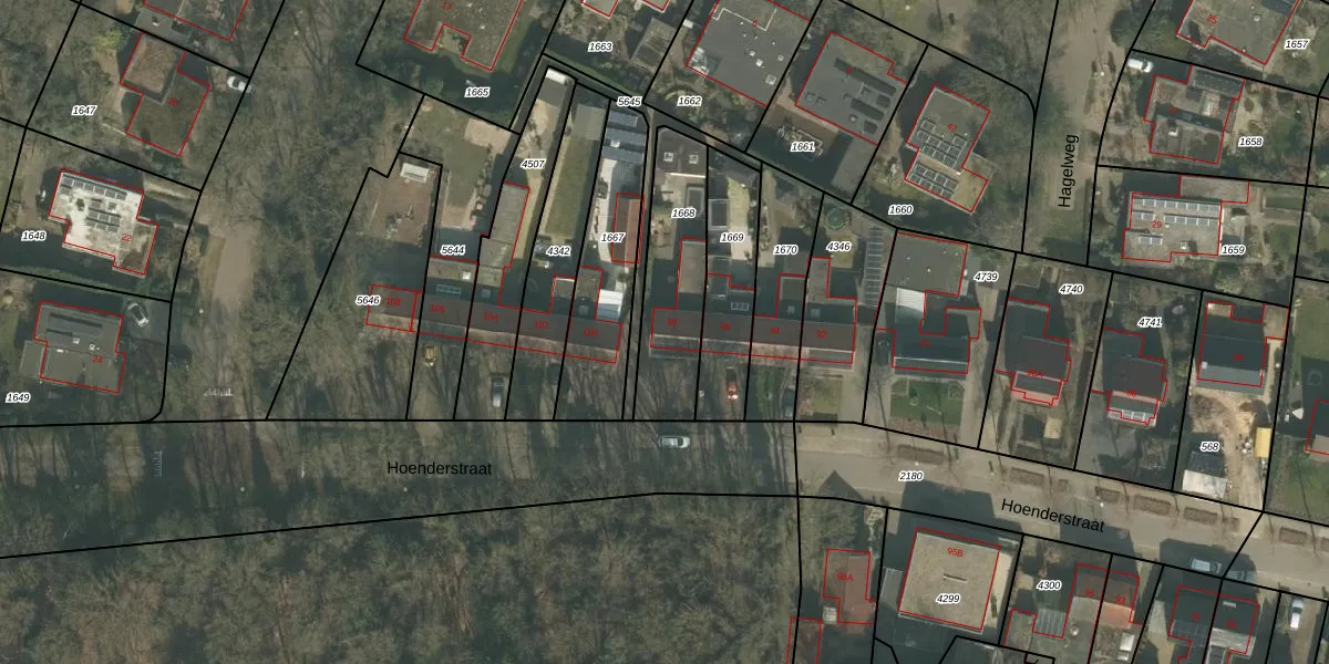 Het perceel waarop Hoenderstraat 98 staat heeft een oppervlakte van 390 m². Dit is een groot perceel. De perceeloppervlakte wordt geregistreerd door het Kadaster. Gedetailleerde informatie over de maten van dit perceel kunt u vinden in het rapport Kadastrale kaart met maatvoering van Hoenderstraat 98.