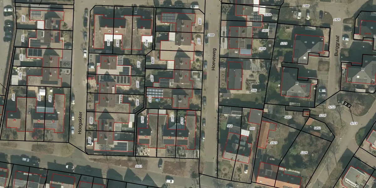 Het perceel waarop Hoeveweg 1 staat heeft een oppervlakte van 332 m². Dit is een groot perceel. De perceeloppervlakte wordt geregistreerd door het Kadaster. Gedetailleerde informatie over de maten van dit perceel kunt u vinden in het rapport Kadastrale kaart met maatvoering van Hoeveweg 1.