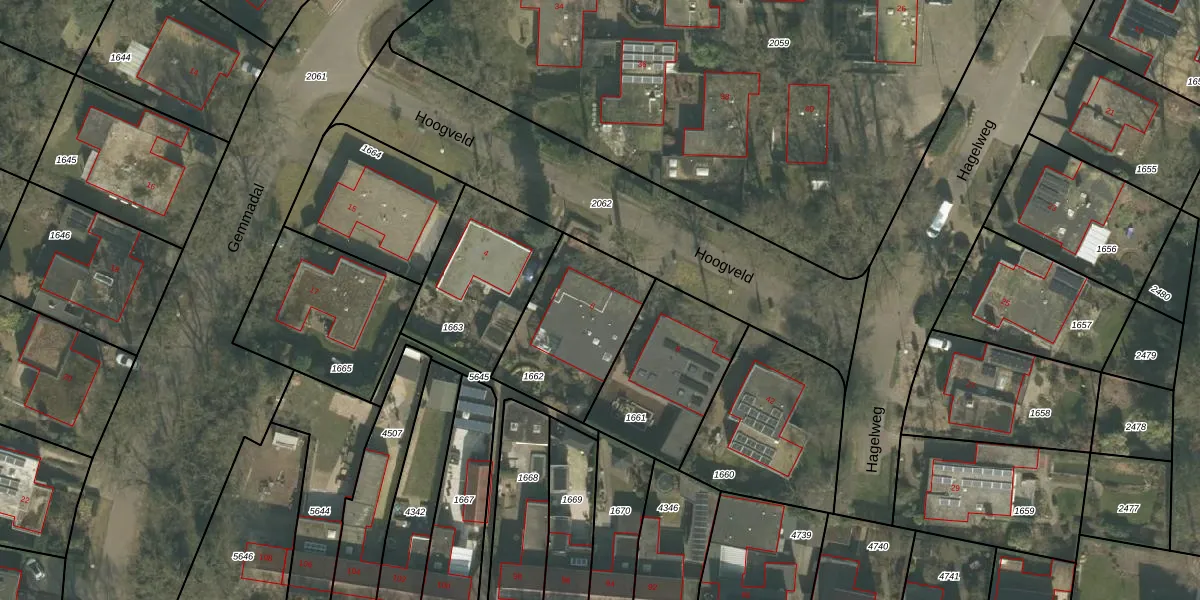 Het perceel waarop Hoogveld 6 staat heeft een oppervlakte van 470 m². Dit is een groot perceel. De perceeloppervlakte wordt geregistreerd door het Kadaster. Gedetailleerde informatie over de maten van dit perceel kunt u vinden in het rapport Kadastrale kaart met maatvoering van Hoogveld 6.