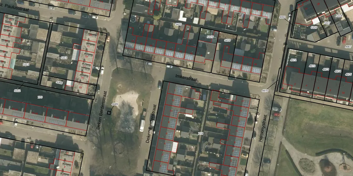Het perceel waarop Imkerstraat 1 staat heeft een oppervlakte van 2863 m². Dit is een zeer groot perceel. De perceeloppervlakte wordt geregistreerd door het Kadaster. Gedetailleerde informatie over de maten van dit perceel kunt u vinden in het rapport Kadastrale kaart met maatvoering van Imkerstraat 1.