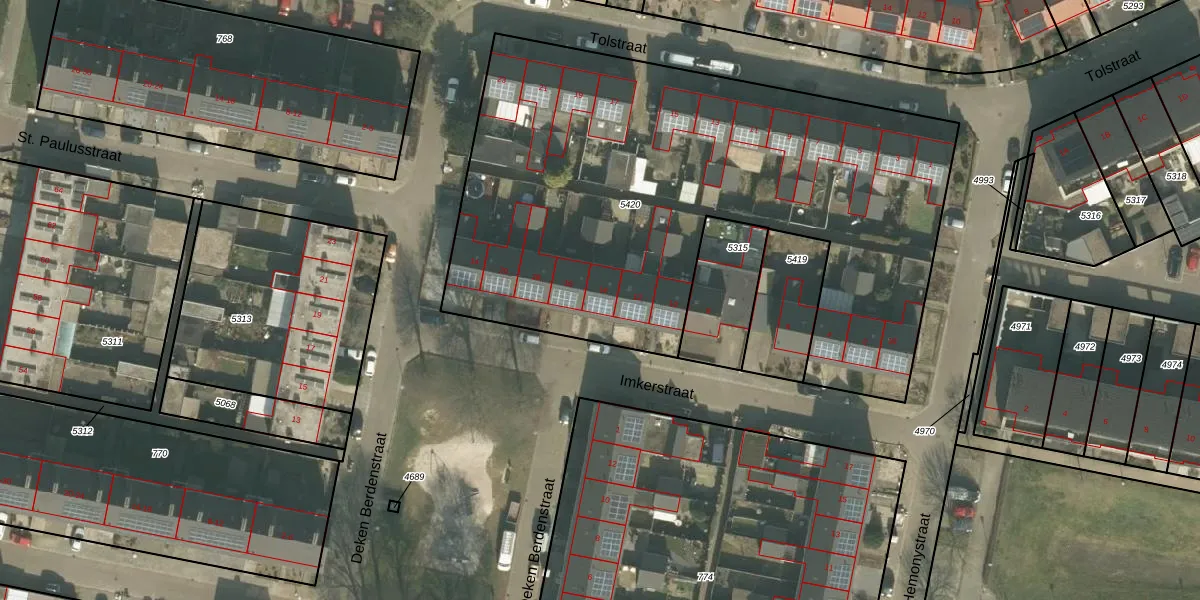 Imkerstraat 14 is gelegen op kadastraal perceel VRY00L5420. Deze kadastrale aanduiding is uniek en wordt gebruikt door het Kadaster om eigendomsrechten en andere zakelijke rechten vast te leggen. Het perceel maakt onderdeel uit van de kadastrale gemeente Venray.