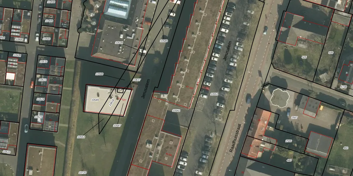 Het perceel waarop Jerusalem 101 staat heeft een oppervlakte van 4075 m². Dit is een zeer groot perceel. De perceeloppervlakte wordt geregistreerd door het Kadaster. Gedetailleerde informatie over de maten van dit perceel kunt u vinden in het rapport Kadastrale kaart met maatvoering van Jerusalem 101.