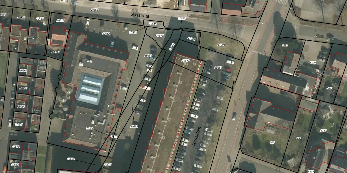 Het perceel waarop Jerusalem 109 staat heeft een oppervlakte van 4075 m². Dit is een zeer groot perceel. De perceeloppervlakte wordt geregistreerd door het Kadaster. Gedetailleerde informatie over de maten van dit perceel kunt u vinden in het rapport Kadastrale kaart met maatvoering van Jerusalem 109.
