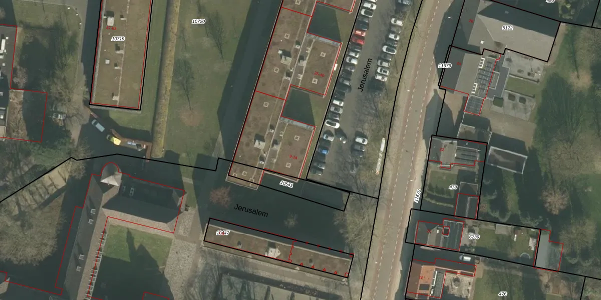 Het perceel waarop Jerusalem 11 staat heeft een oppervlakte van 4075 m². Dit is een zeer groot perceel. De perceeloppervlakte wordt geregistreerd door het Kadaster. Gedetailleerde informatie over de maten van dit perceel kunt u vinden in het rapport Kadastrale kaart met maatvoering van Jerusalem 11.