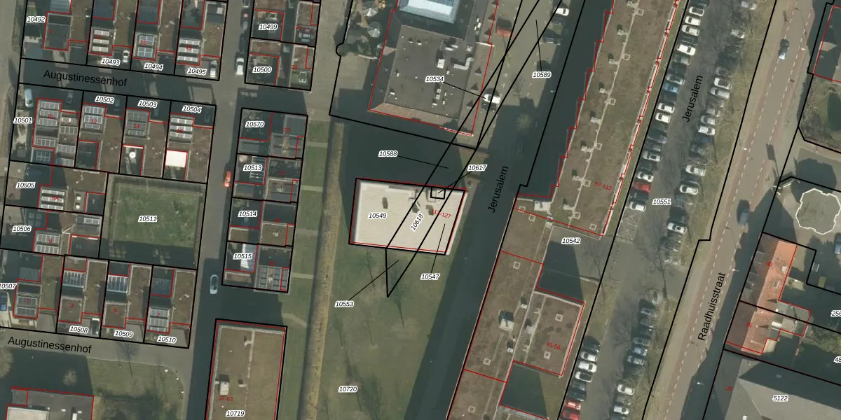 Het perceel waarop Jerusalem 121 staat heeft een oppervlakte van 102 m². Dit is een middelgroot perceel. De perceeloppervlakte wordt geregistreerd door het Kadaster. Gedetailleerde informatie over de maten van dit perceel kunt u vinden in het rapport Kadastrale kaart met maatvoering van Jerusalem 121.