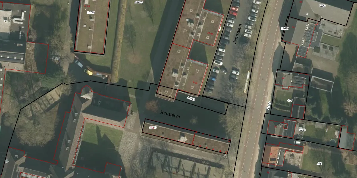 Het perceel waarop Jerusalem 17 staat heeft een oppervlakte van 4075 m². Dit is een zeer groot perceel. De perceeloppervlakte wordt geregistreerd door het Kadaster. Gedetailleerde informatie over de maten van dit perceel kunt u vinden in het rapport Kadastrale kaart met maatvoering van Jerusalem 17.