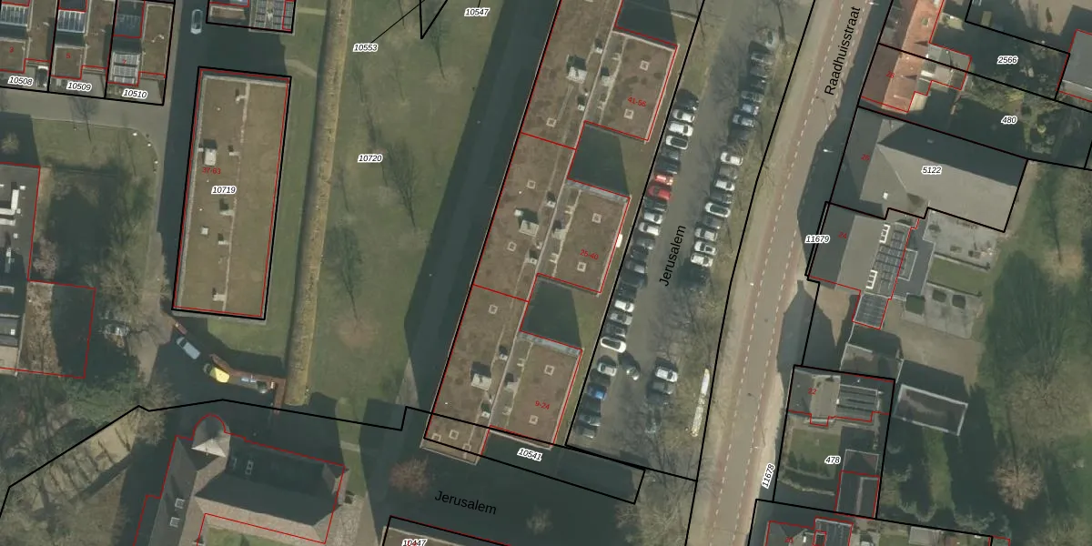 Het perceel waarop Jerusalem 33 staat heeft een oppervlakte van 4075 m². Dit is een zeer groot perceel. De perceeloppervlakte wordt geregistreerd door het Kadaster. Gedetailleerde informatie over de maten van dit perceel kunt u vinden in het rapport Kadastrale kaart met maatvoering van Jerusalem 33.
