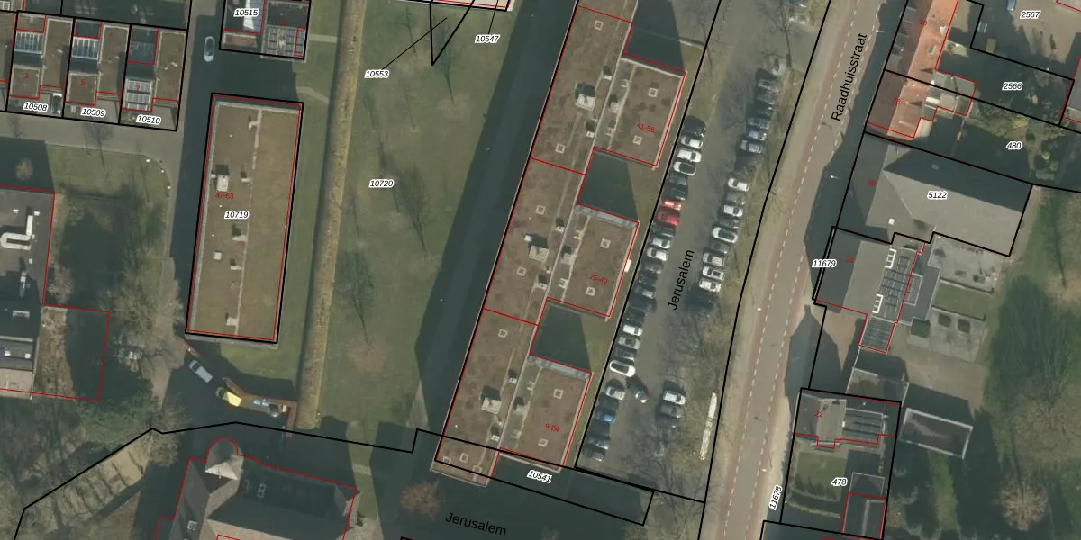 Het perceel waarop Jerusalem 38 staat heeft een oppervlakte van 4075 m². Dit is een zeer groot perceel. De perceeloppervlakte wordt geregistreerd door het Kadaster. Gedetailleerde informatie over de maten van dit perceel kunt u vinden in het rapport Kadastrale kaart met maatvoering van Jerusalem 38.
