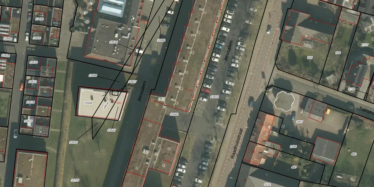 Het perceel waarop Jerusalem 67 staat heeft een oppervlakte van 4075 m². Dit is een zeer groot perceel. De perceeloppervlakte wordt geregistreerd door het Kadaster. Gedetailleerde informatie over de maten van dit perceel kunt u vinden in het rapport Kadastrale kaart met maatvoering van Jerusalem 67.