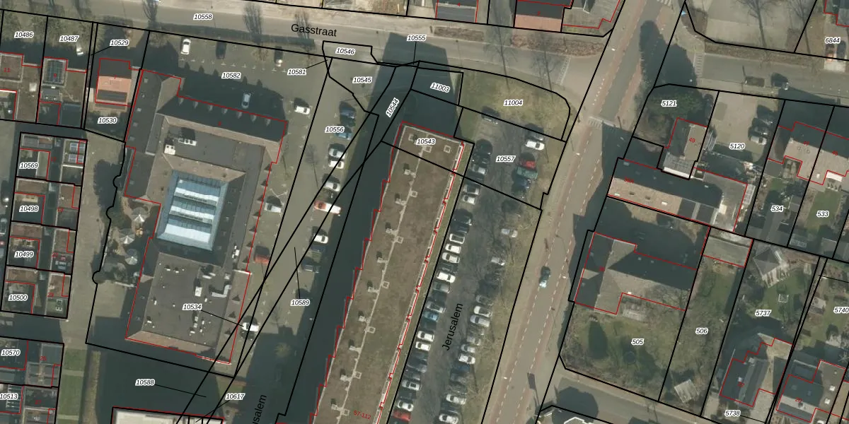 Het perceel waarop Jerusalem 75 staat heeft een oppervlakte van 4075 m². Dit is een zeer groot perceel. De perceeloppervlakte wordt geregistreerd door het Kadaster. Gedetailleerde informatie over de maten van dit perceel kunt u vinden in het rapport Kadastrale kaart met maatvoering van Jerusalem 75.