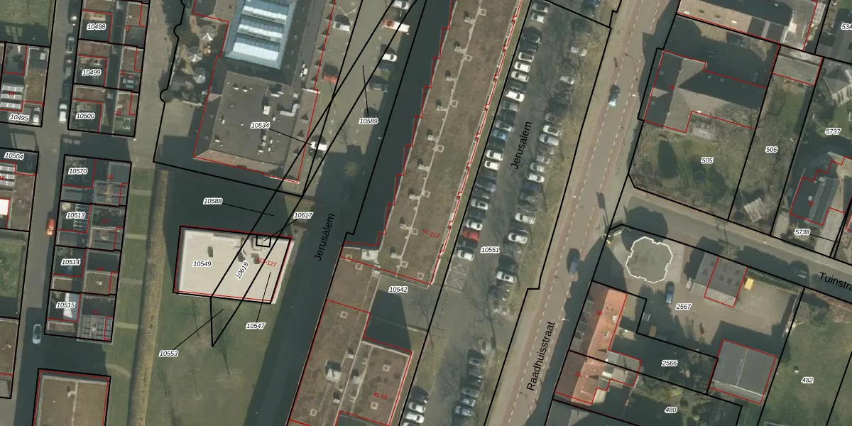 Het perceel waarop Jerusalem 79 staat heeft een oppervlakte van 4075 m². Dit is een zeer groot perceel. De perceeloppervlakte wordt geregistreerd door het Kadaster. Gedetailleerde informatie over de maten van dit perceel kunt u vinden in het rapport Kadastrale kaart met maatvoering van Jerusalem 79.