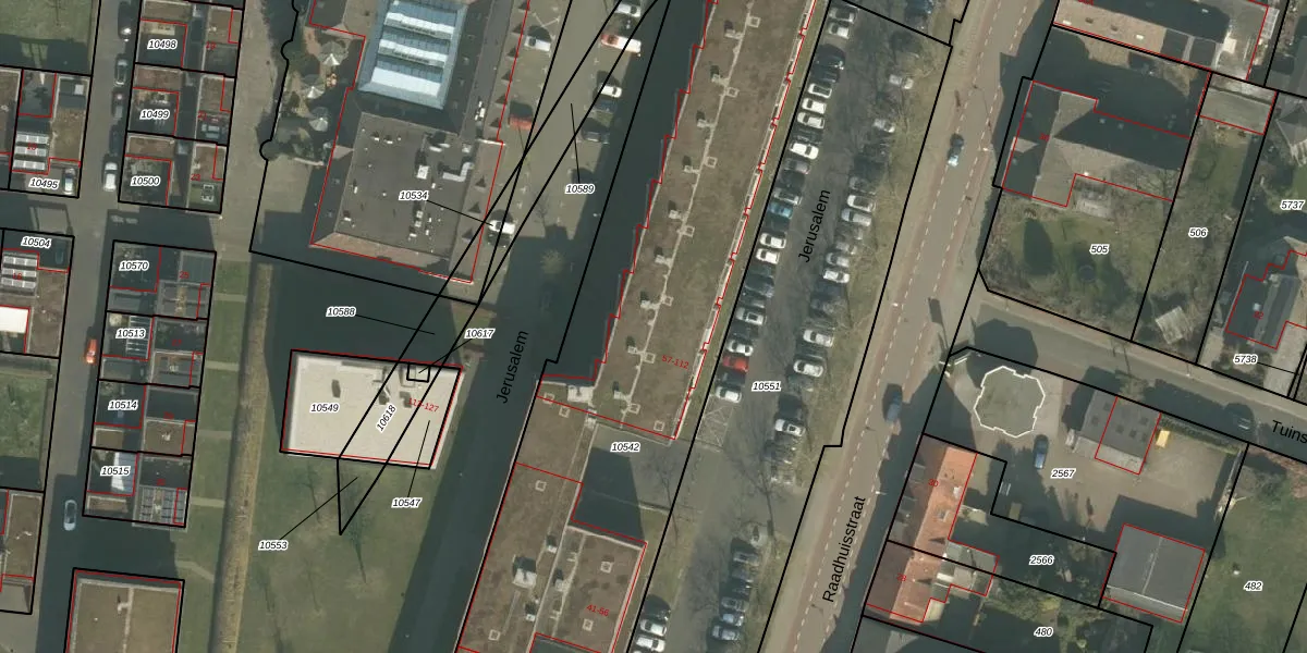 Het perceel waarop Jerusalem 90 staat heeft een oppervlakte van 4075 m². Dit is een zeer groot perceel. De perceeloppervlakte wordt geregistreerd door het Kadaster. Gedetailleerde informatie over de maten van dit perceel kunt u vinden in het rapport Kadastrale kaart met maatvoering van Jerusalem 90.