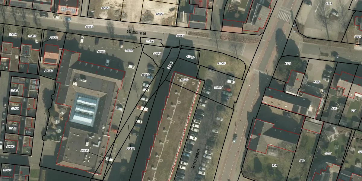 Het perceel waarop Jerusalem 99 staat heeft een oppervlakte van 4075 m². Dit is een zeer groot perceel. De perceeloppervlakte wordt geregistreerd door het Kadaster. Gedetailleerde informatie over de maten van dit perceel kunt u vinden in het rapport Kadastrale kaart met maatvoering van Jerusalem 99.