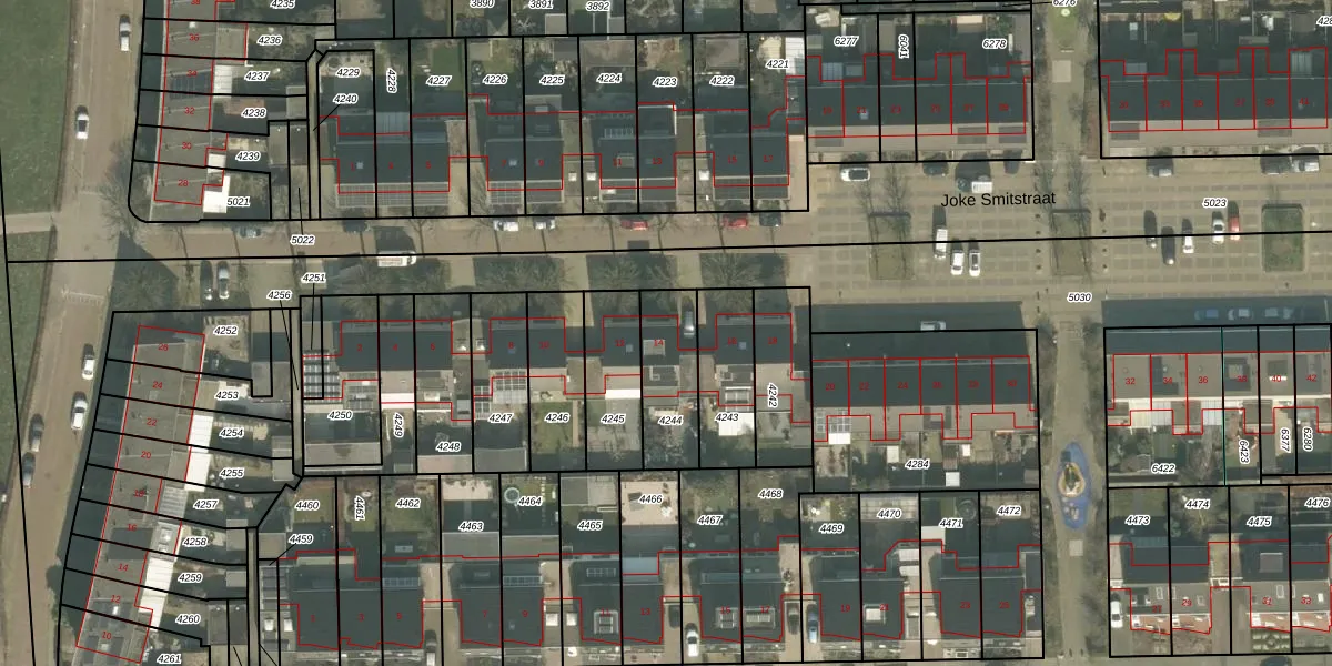Het perceel waarop Joke Smitstraat 14 staat heeft een oppervlakte van 230 m². Dit is een middelgroot perceel. De perceeloppervlakte wordt geregistreerd door het Kadaster. Gedetailleerde informatie over de maten van dit perceel kunt u vinden in het rapport Kadastrale kaart met maatvoering van Joke Smitstraat 14.