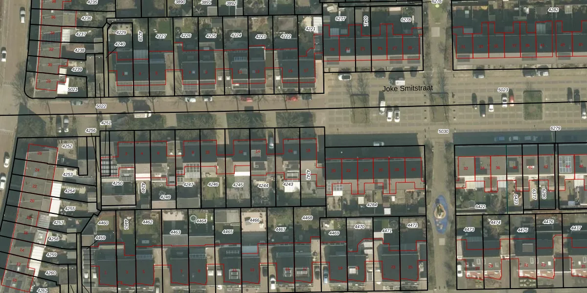 Het perceel waarop Joke Smitstraat 16 staat heeft een oppervlakte van 230 m². Dit is een middelgroot perceel. De perceeloppervlakte wordt geregistreerd door het Kadaster. Gedetailleerde informatie over de maten van dit perceel kunt u vinden in het rapport Kadastrale kaart met maatvoering van Joke Smitstraat 16.