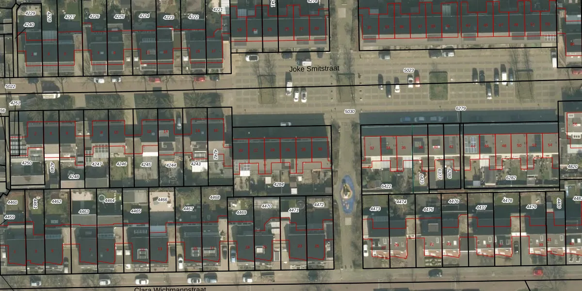 Het perceel waarop Joke Smitstraat 26 staat heeft een oppervlakte van 816 m². Dit is een groot perceel. De perceeloppervlakte wordt geregistreerd door het Kadaster. Gedetailleerde informatie over de maten van dit perceel kunt u vinden in het rapport Kadastrale kaart met maatvoering van Joke Smitstraat 26.