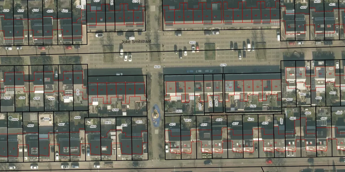 Het perceel waarop Joke Smitstraat 32 staat heeft een oppervlakte van 423 m². Dit is een groot perceel. De perceeloppervlakte wordt geregistreerd door het Kadaster. Gedetailleerde informatie over de maten van dit perceel kunt u vinden in het rapport Kadastrale kaart met maatvoering van Joke Smitstraat 32.
