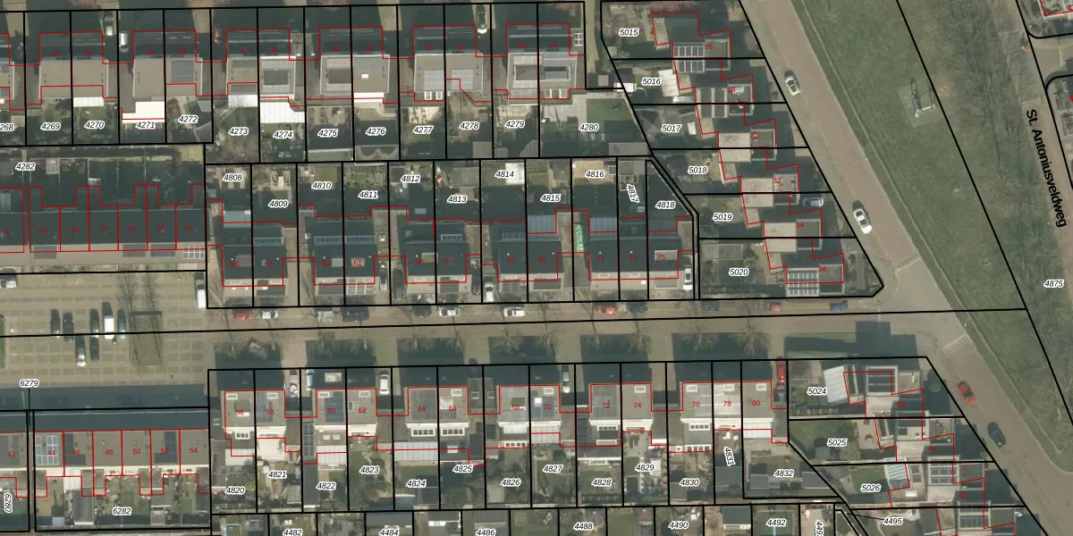 Gebruik de zoekbalk of klik op een perceel voor informatie over de adressen binnen dit perceel.