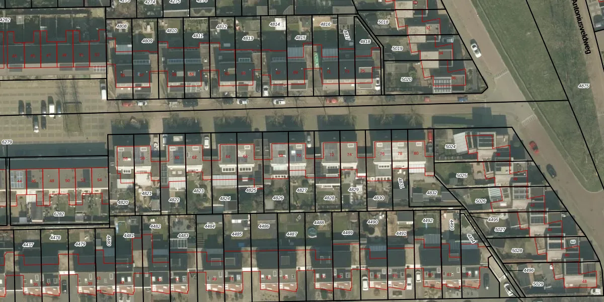 Gebruik de zoekbalk of klik op een perceel voor informatie over de adressen binnen dit perceel.