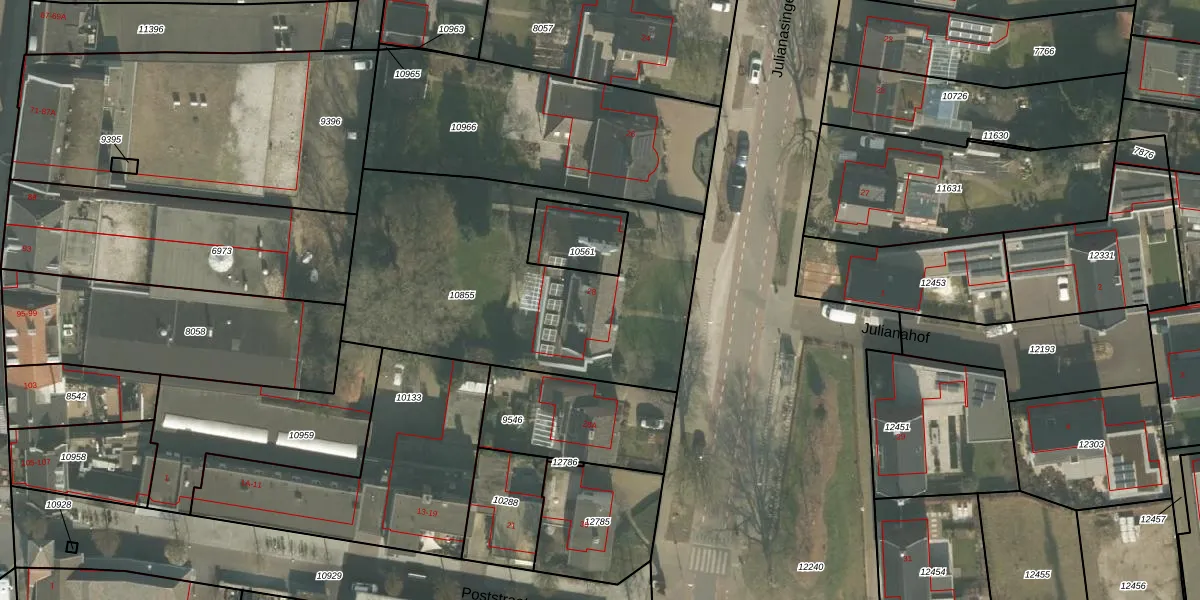 Julianasingel 28 is gelegen op kadastraal perceel VRY00C10855. Deze kadastrale aanduiding is uniek en wordt gebruikt door het Kadaster om eigendomsrechten en andere zakelijke rechten vast te leggen. Het perceel maakt onderdeel uit van de kadastrale gemeente Venray.