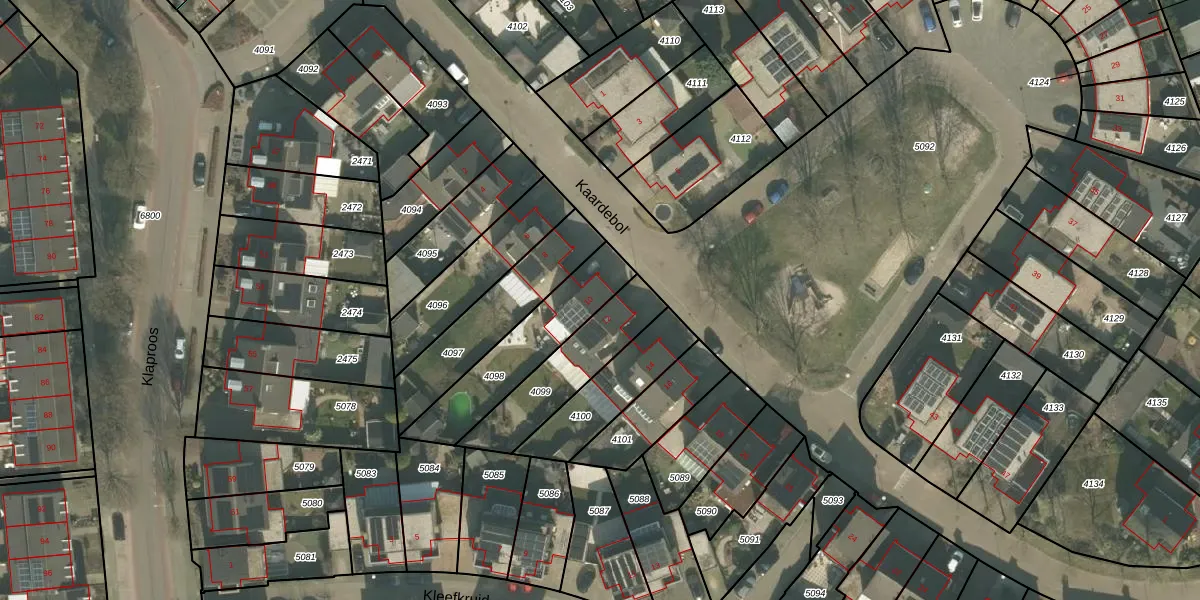 Het perceel waarop Kaardebol 10 staat heeft een oppervlakte van 335 m². Dit is een groot perceel. De perceeloppervlakte wordt geregistreerd door het Kadaster. Gedetailleerde informatie over de maten van dit perceel kunt u vinden in het rapport Kadastrale kaart met maatvoering van Kaardebol 10.