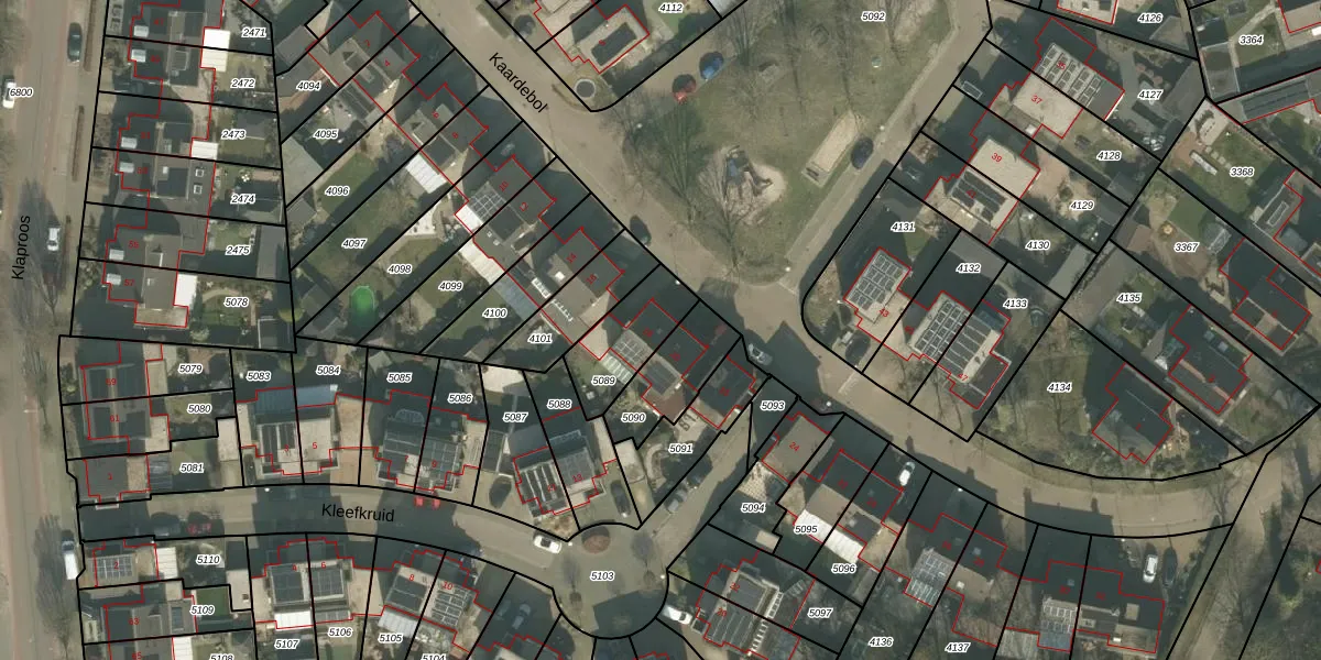 Het perceel waarop Kaardebol 18 staat heeft een oppervlakte van 213 m². Dit is een middelgroot perceel. De perceeloppervlakte wordt geregistreerd door het Kadaster. Gedetailleerde informatie over de maten van dit perceel kunt u vinden in het rapport Kadastrale kaart met maatvoering van Kaardebol 18.