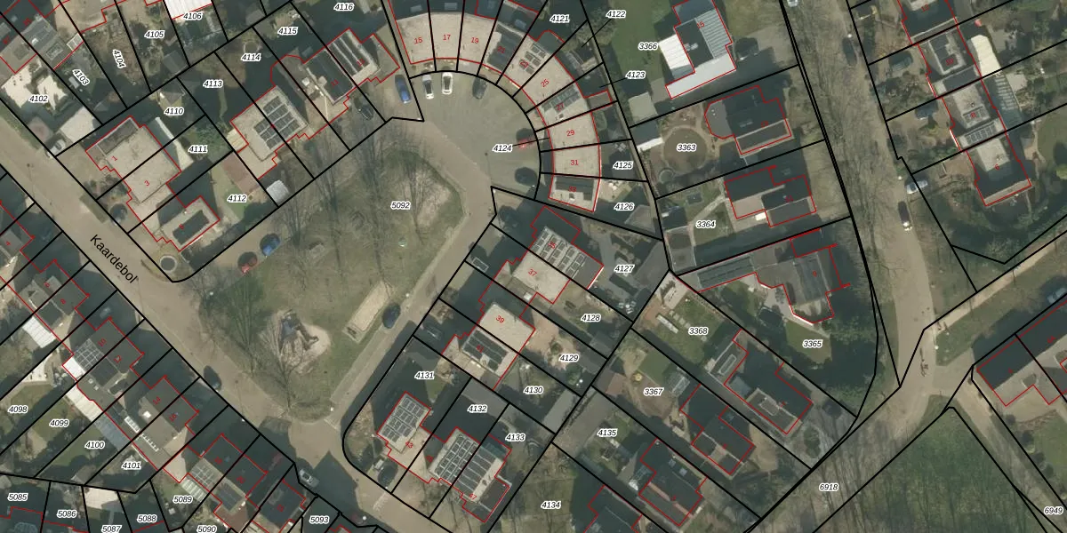 Het perceel waarop Kaardebol 37 staat heeft een oppervlakte van 279 m². Dit is een middelgroot perceel. De perceeloppervlakte wordt geregistreerd door het Kadaster. Gedetailleerde informatie over de maten van dit perceel kunt u vinden in het rapport Kadastrale kaart met maatvoering van Kaardebol 37.