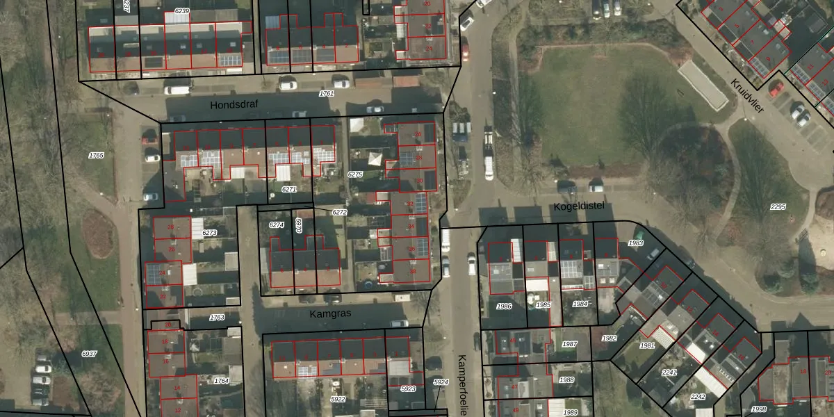 Het perceel waarop Kamperfoelie 32 staat heeft een oppervlakte van 1299 m². Dit is een zeer groot perceel. De perceeloppervlakte wordt geregistreerd door het Kadaster. Gedetailleerde informatie over de maten van dit perceel kunt u vinden in het rapport Kadastrale kaart met maatvoering van Kamperfoelie 32.