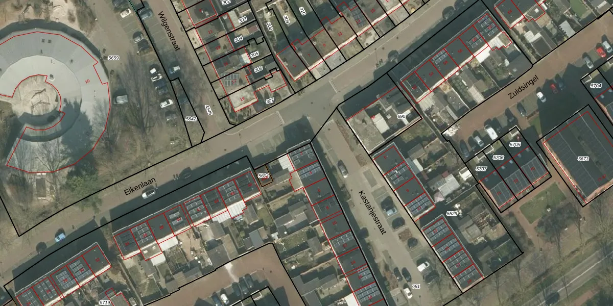 Het perceel waarop Kastanjestraat 2 staat heeft een oppervlakte van 5753 m². Dit is een zeer groot perceel. De perceeloppervlakte wordt geregistreerd door het Kadaster. Gedetailleerde informatie over de maten van dit perceel kunt u vinden in het rapport Kadastrale kaart met maatvoering van Kastanjestraat 2.