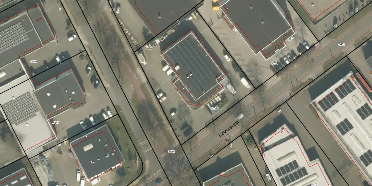Het perceel waarop Keizersveld 20 staat heeft een oppervlakte van 2498 m². Dit is een zeer groot perceel. De perceeloppervlakte wordt geregistreerd door het Kadaster. Gedetailleerde informatie over de maten van dit perceel kunt u vinden in het rapport Kadastrale kaart met maatvoering van Keizersveld 20.