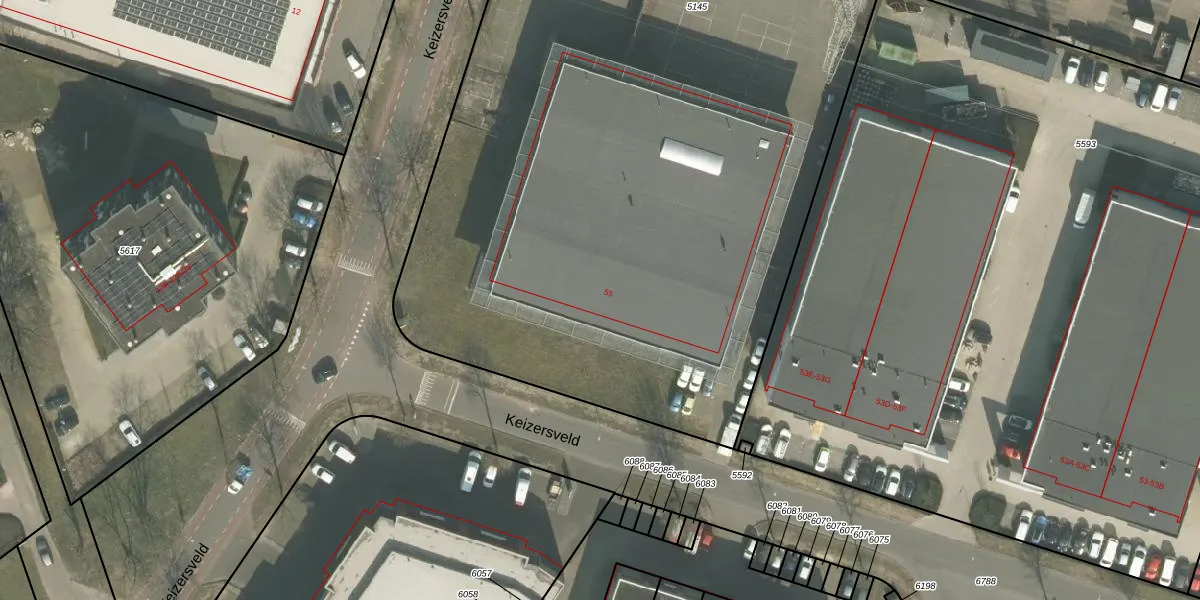 Het perceel waarop Keizersveld 55 staat heeft een oppervlakte van 4995 m². Dit is een zeer groot perceel. De perceeloppervlakte wordt geregistreerd door het Kadaster. Gedetailleerde informatie over de maten van dit perceel kunt u vinden in het rapport Kadastrale kaart met maatvoering van Keizersveld 55.