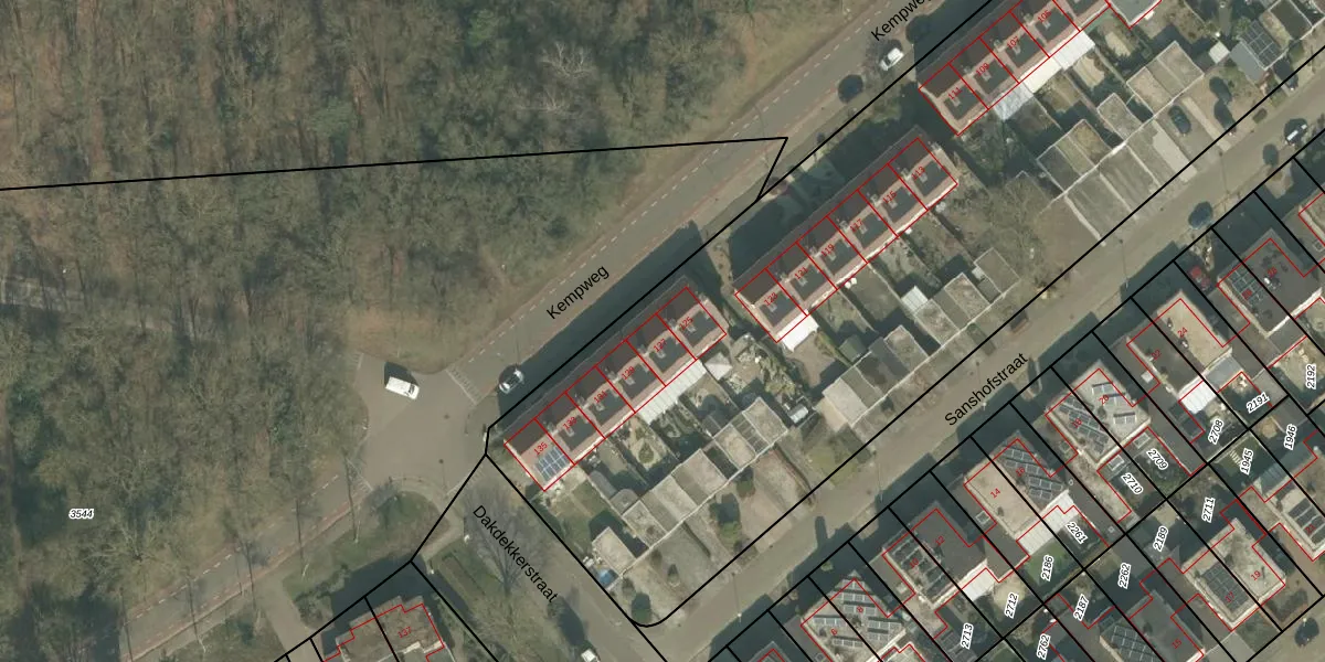 Het perceel waarop Kempweg 127 staat heeft een oppervlakte van 7838 m². Dit is een zeer groot perceel. De perceeloppervlakte wordt geregistreerd door het Kadaster. Gedetailleerde informatie over de maten van dit perceel kunt u vinden in het rapport Kadastrale kaart met maatvoering van Kempweg 127.