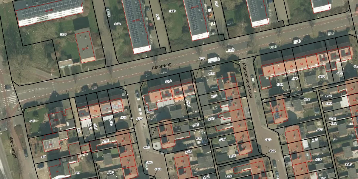 Het perceel waarop Kempweg 63 staat heeft een oppervlakte van 565 m². Dit is een groot perceel. De perceeloppervlakte wordt geregistreerd door het Kadaster. Gedetailleerde informatie over de maten van dit perceel kunt u vinden in het rapport Kadastrale kaart met maatvoering van Kempweg 63.