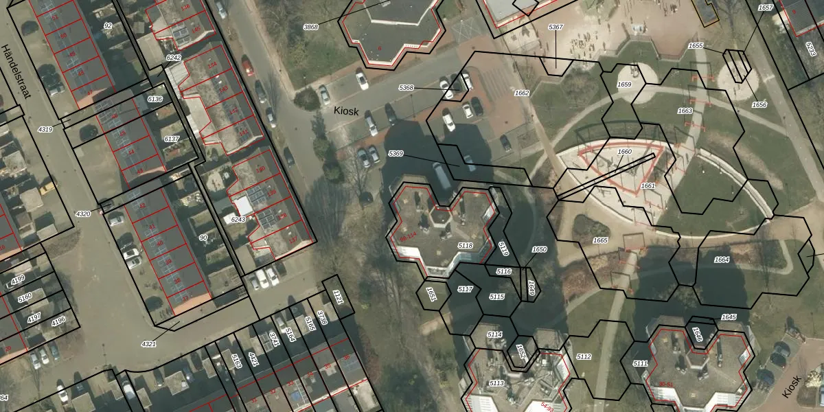 Het perceel waarop Kiosk 108 staat heeft een oppervlakte van 465 m². Dit is een groot perceel. De perceeloppervlakte wordt geregistreerd door het Kadaster. Gedetailleerde informatie over de maten van dit perceel kunt u vinden in het rapport Kadastrale kaart met maatvoering van Kiosk 108.