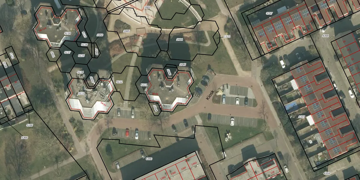 Het perceel waarop Kiosk 39 staat heeft een oppervlakte van 524 m². Dit is een groot perceel. De perceeloppervlakte wordt geregistreerd door het Kadaster. Gedetailleerde informatie over de maten van dit perceel kunt u vinden in het rapport Kadastrale kaart met maatvoering van Kiosk 39.
