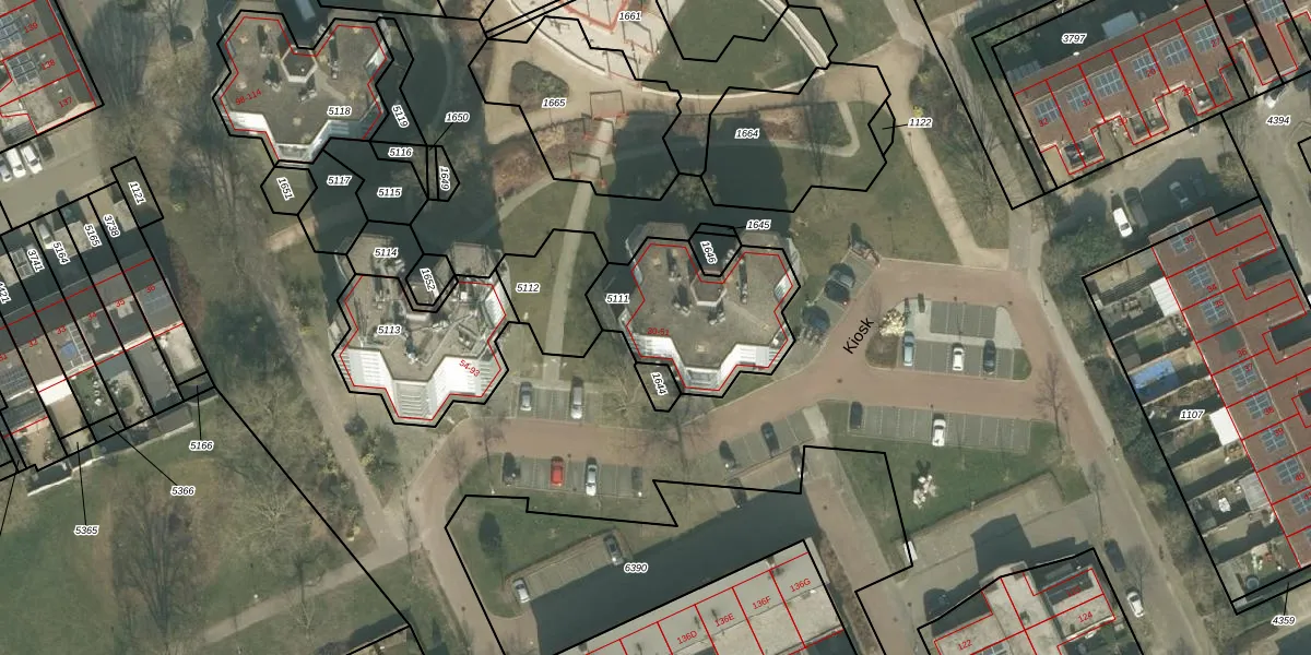 Het perceel waarop Kiosk 40 staat heeft een oppervlakte van 524 m². Dit is een groot perceel. De perceeloppervlakte wordt geregistreerd door het Kadaster. Gedetailleerde informatie over de maten van dit perceel kunt u vinden in het rapport Kadastrale kaart met maatvoering van Kiosk 40.