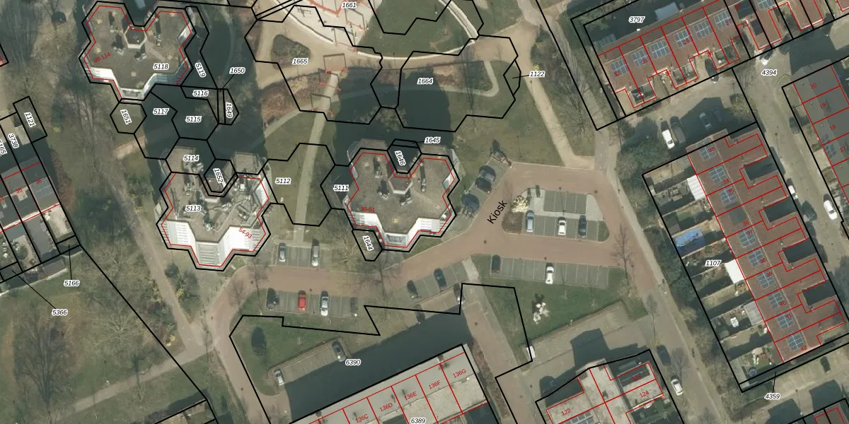 Het perceel waarop Kiosk 44 staat heeft een oppervlakte van 524 m². Dit is een groot perceel. De perceeloppervlakte wordt geregistreerd door het Kadaster. Gedetailleerde informatie over de maten van dit perceel kunt u vinden in het rapport Kadastrale kaart met maatvoering van Kiosk 44.