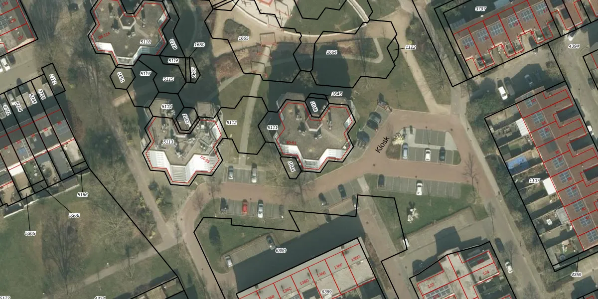 Het perceel waarop Kiosk 46 staat heeft een oppervlakte van 524 m². Dit is een groot perceel. De perceeloppervlakte wordt geregistreerd door het Kadaster. Gedetailleerde informatie over de maten van dit perceel kunt u vinden in het rapport Kadastrale kaart met maatvoering van Kiosk 46.