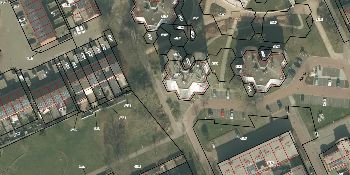 Het perceel waarop Kiosk 91 staat heeft een oppervlakte van 456 m². Dit is een groot perceel. De perceeloppervlakte wordt geregistreerd door het Kadaster. Gedetailleerde informatie over de maten van dit perceel kunt u vinden in het rapport Kadastrale kaart met maatvoering van Kiosk 91.